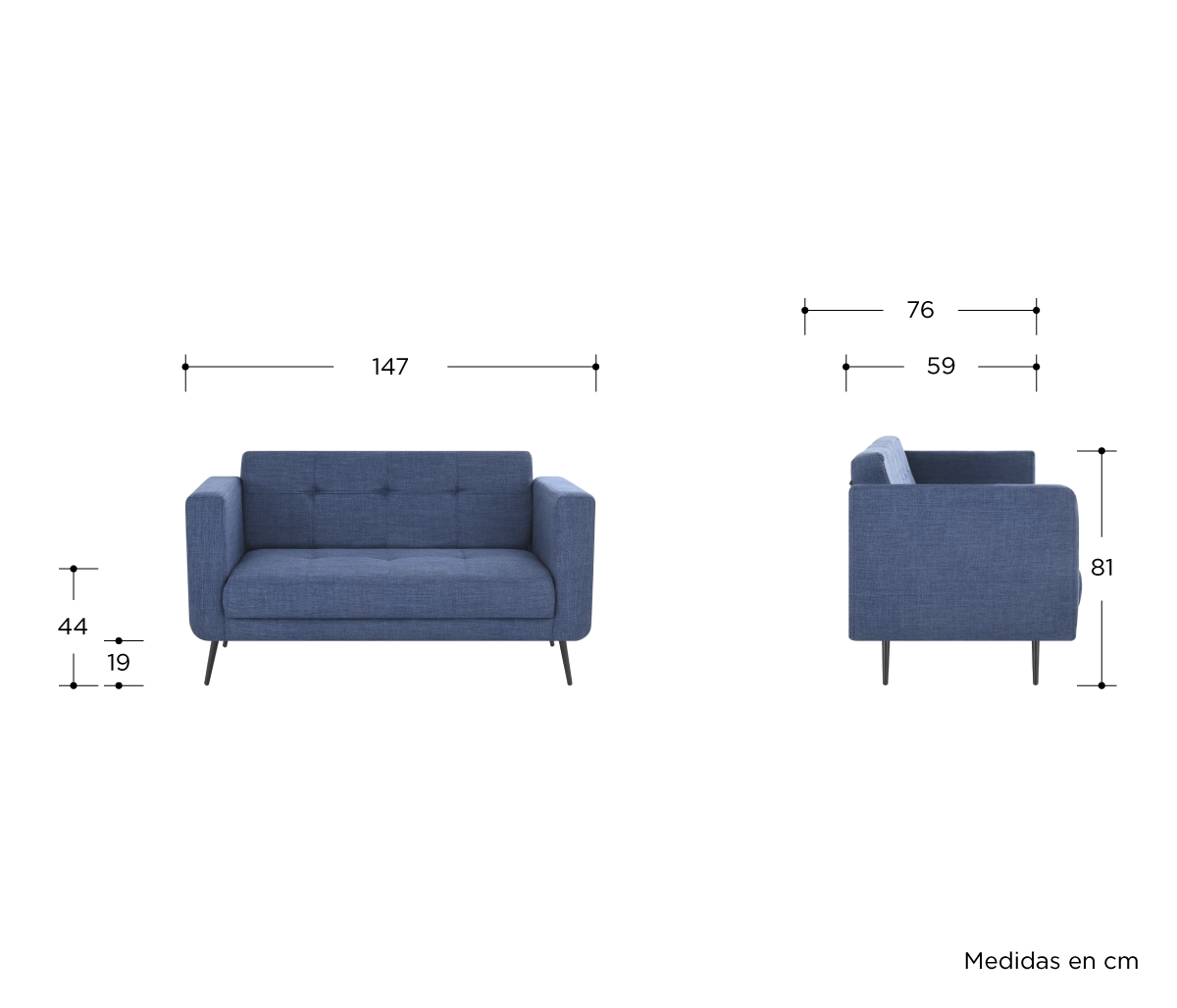Sofá 2 cuerpos Nativitas - Azul
