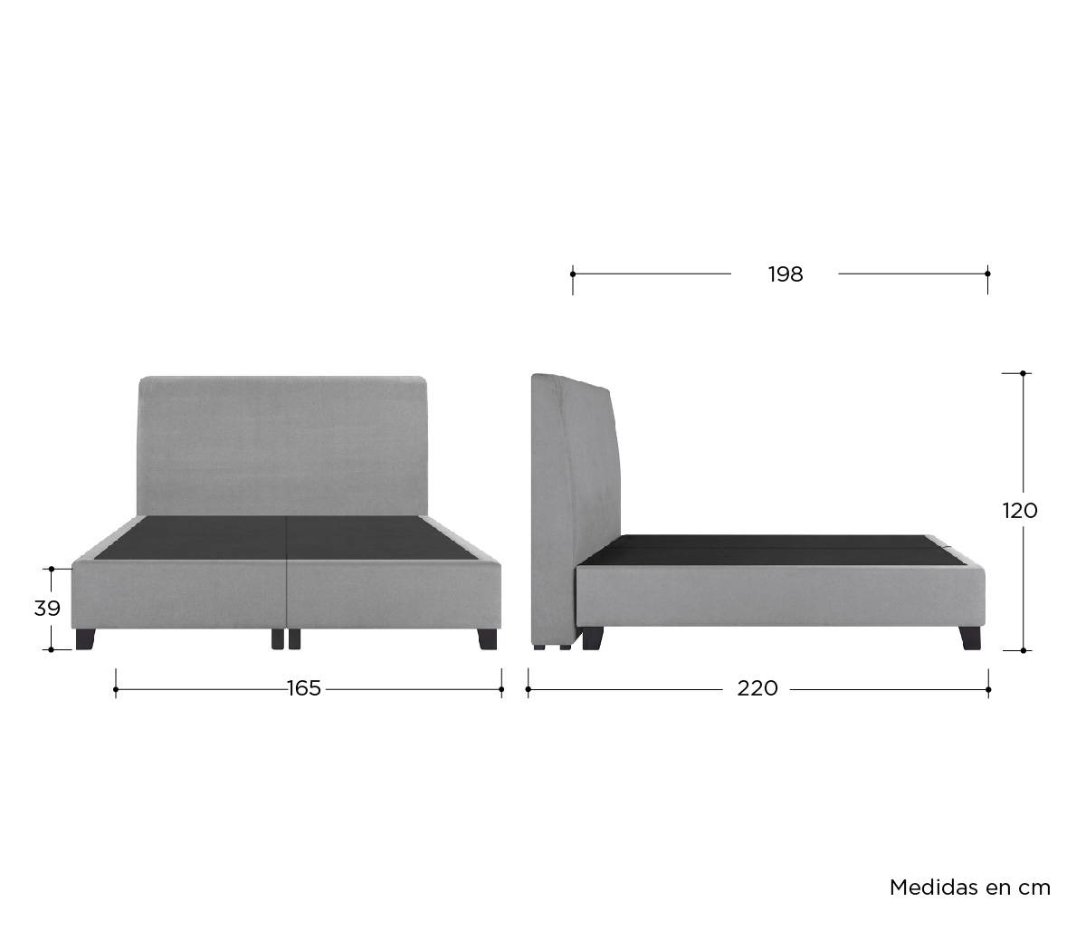 Cama king size Alva - Gris claro