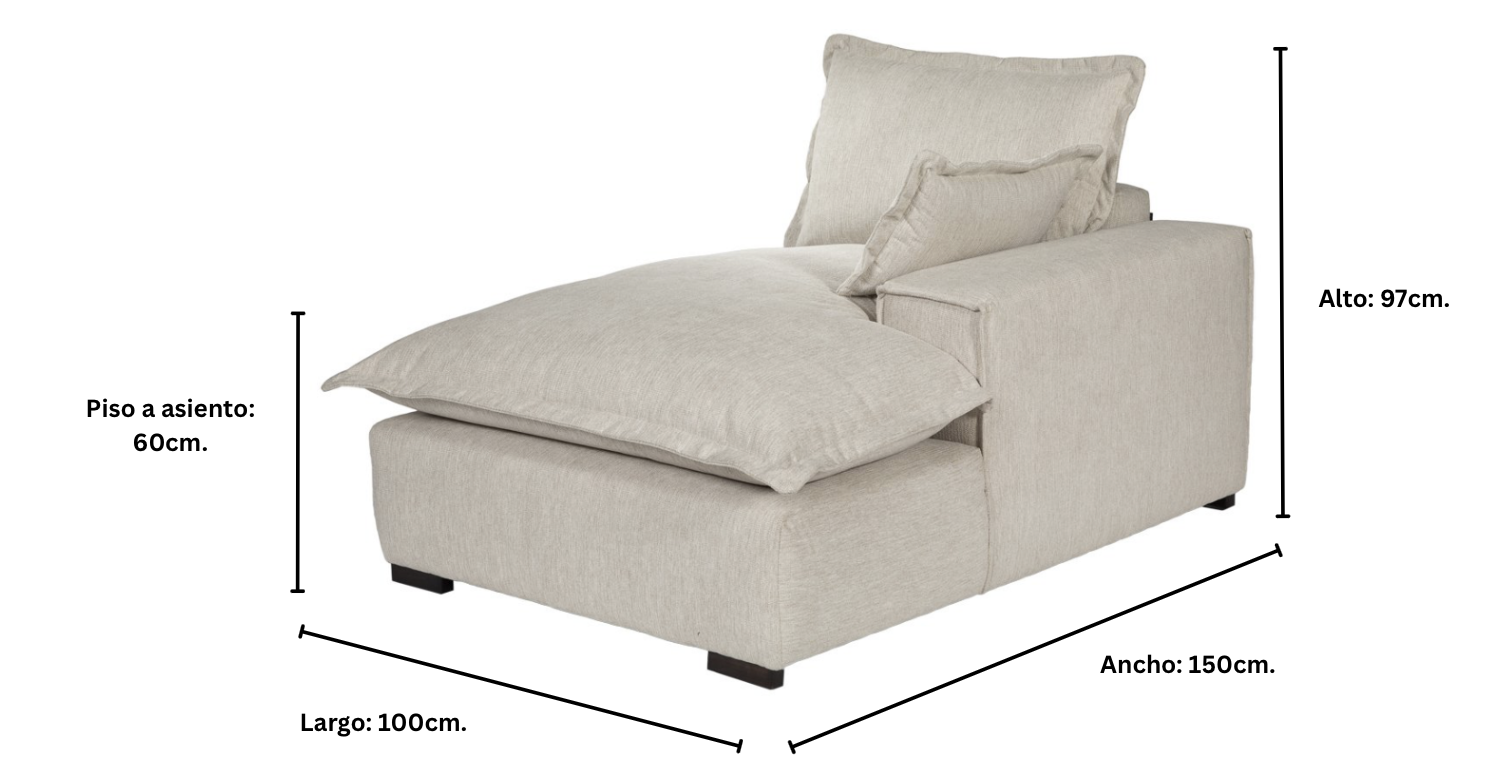 Se recomienda limpieza profesional. No usar lavadora. Cojines no desenfundables. Retirar el polvo con aspiradora o con un cepillo suave una vez a la semana, en caso de mancha, retirar la suciedad con una esponja ligeramente humedecida en agua con jabón neutro, luego secar la superficie con un paño suave y seco. No usar productos abrasivos o máquinas de vapor, ya que podrían decolorar el textil o lastimar las fibras del producto. No exponer al sol, ya que esto puede provocar cambios en el color y la textura. Pueden usarse protectores en aerosol (teflón) para tapizados, esto ayudará a proteger el producto contra las manchas. El Peeling es un efecto común en las fibras debido al frotamiento que se ejerce con el uso, el efecto será menor con el mantenimiento regular del tapizado, es posible que haya un ligero cambio de color al roce con la ropa por el uso común de la pieza.