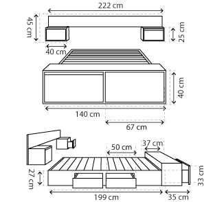 Desactivado---Cama matrimonial Haku con pie de cama - Café