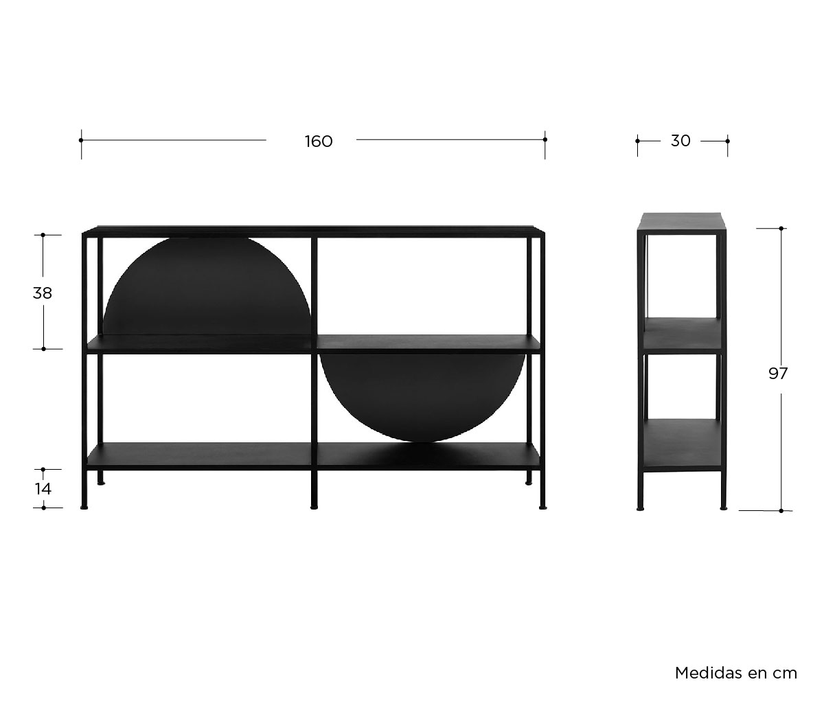 Librero bajo Corcuera 160 cm - Negro