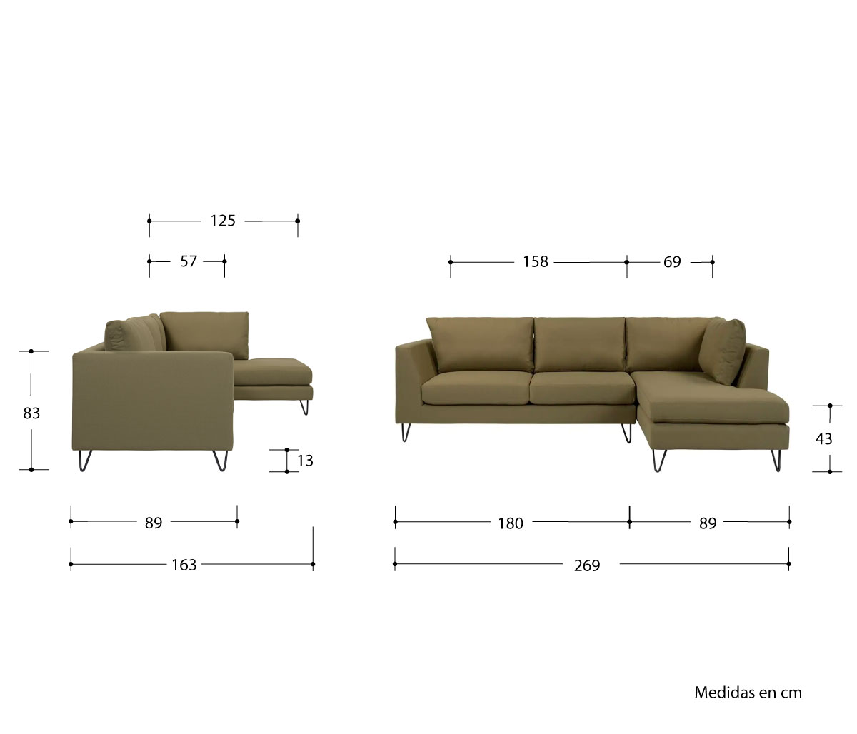 Sala esquinera derecha Yoco - Verde olivo