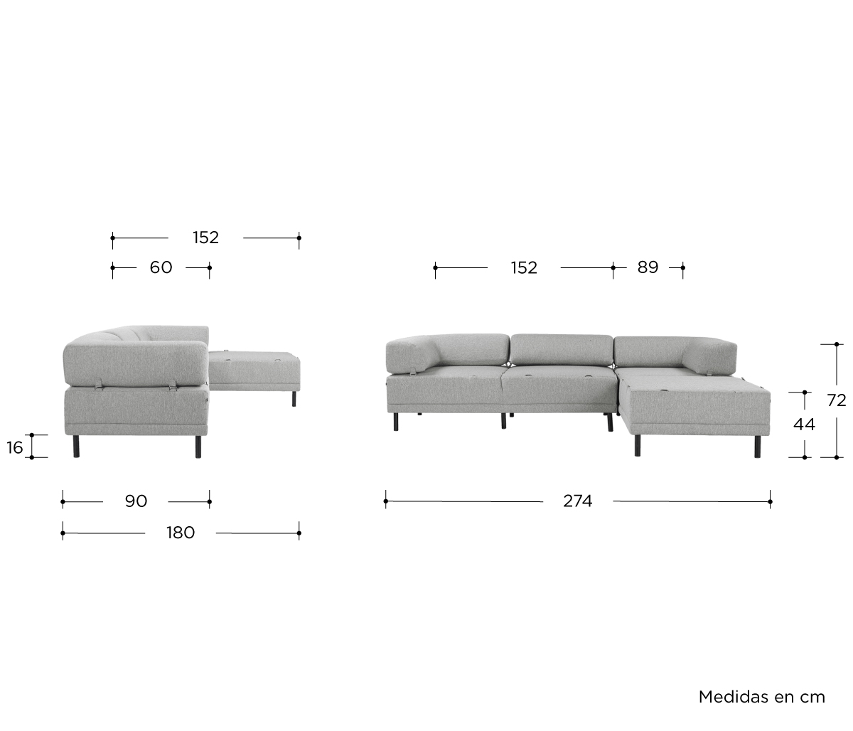 Sala esquinera Santa Cecilia pata negra - Gris claro