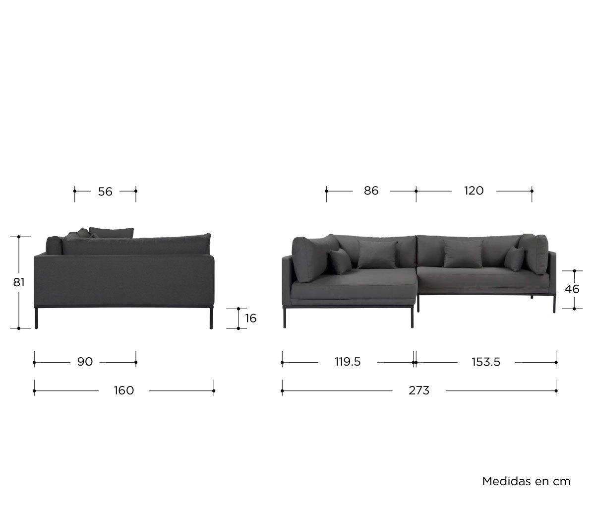 Sala esquinera Santa Cecilia pata negra - Negro