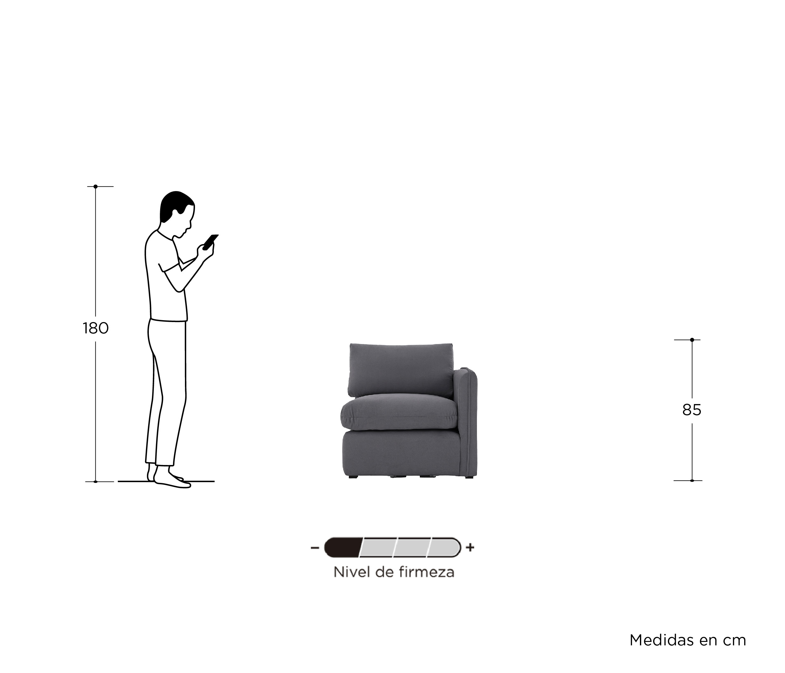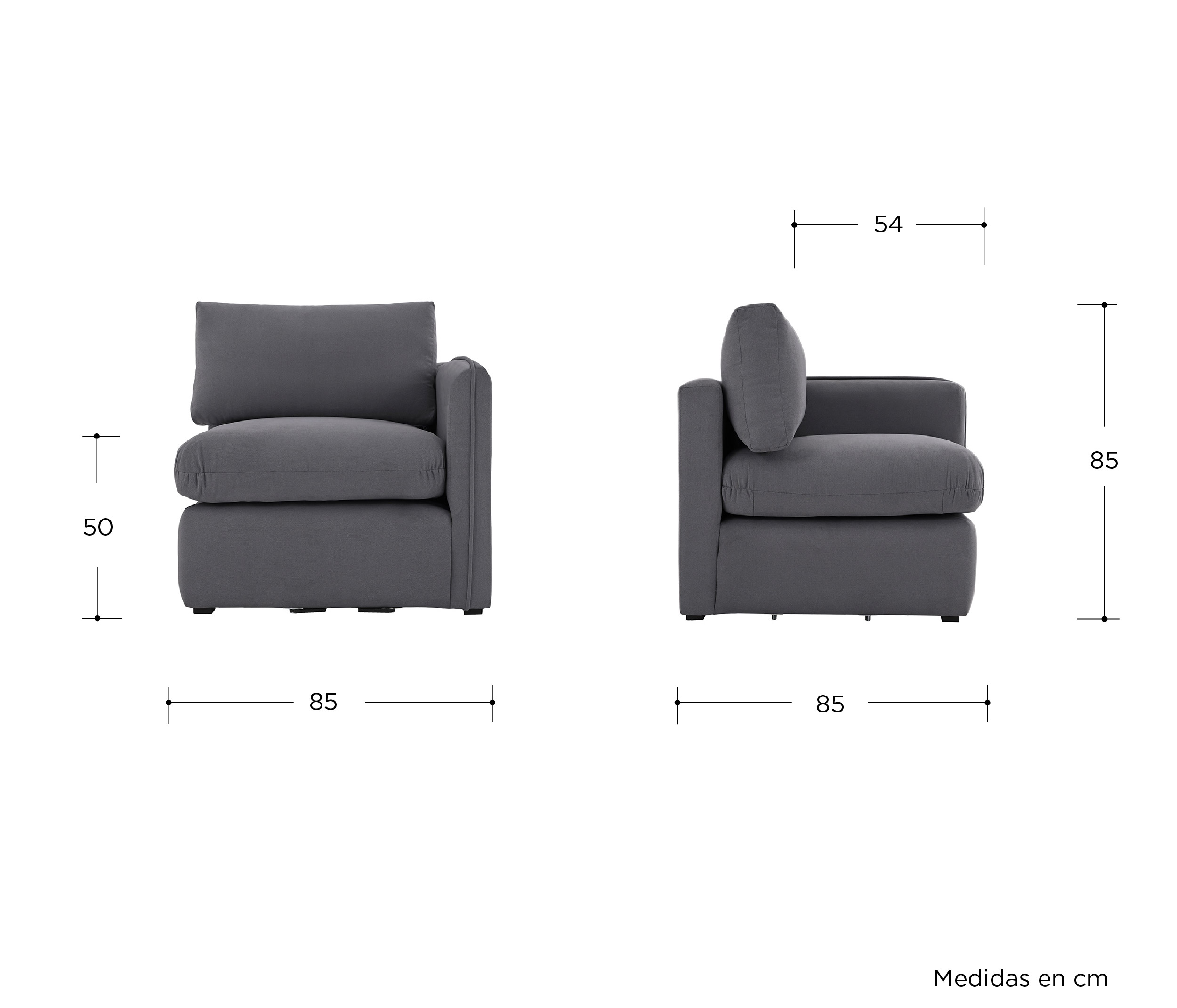 Sillón con brazo derecho Bossano - Gris oscuro