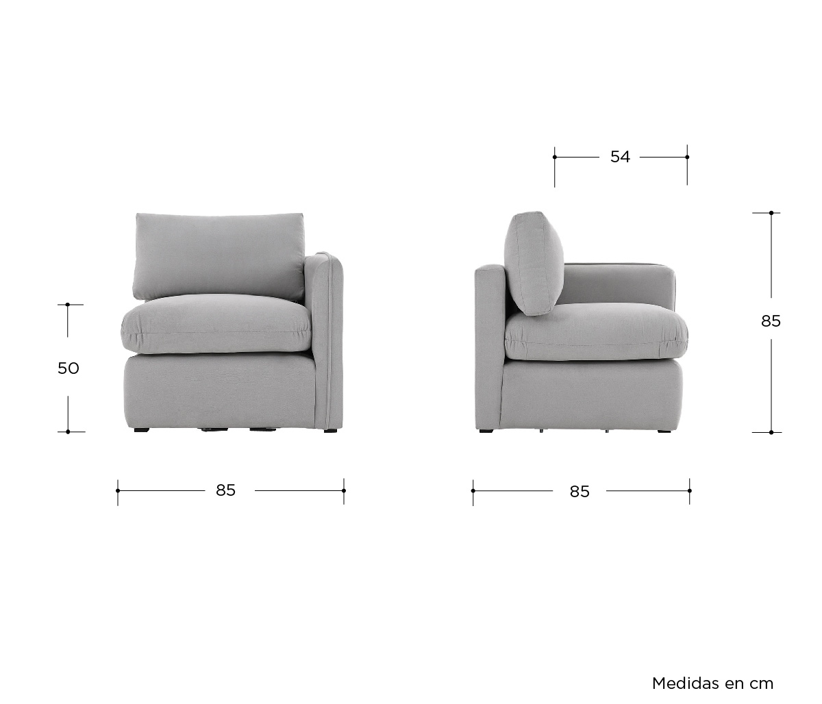 Sillón con brazo derecho Bossano - Gris claro
