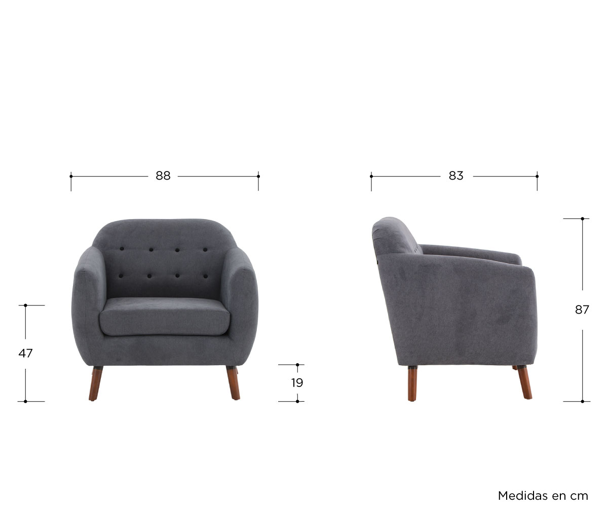 Sillón San Blas pata nogal - Gris oscuro