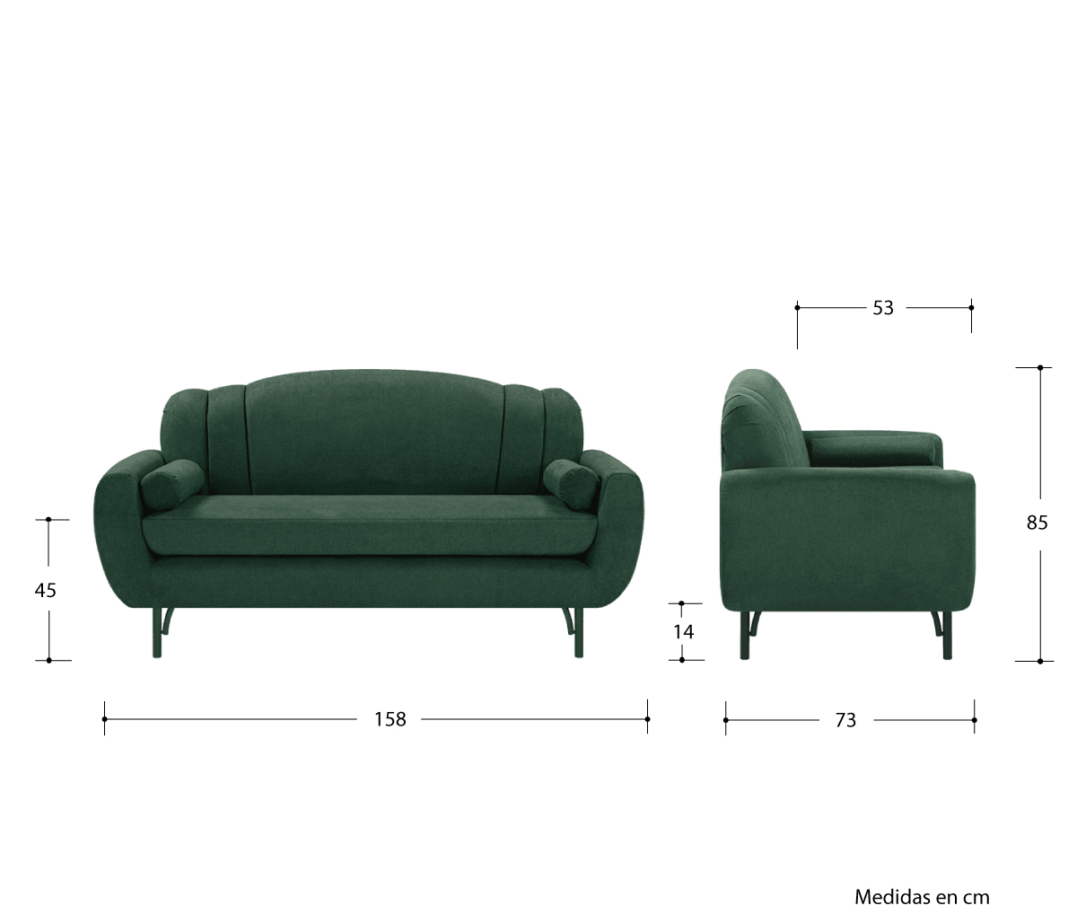 Sofá 3 cuerpos Basurto pata negra - Verde