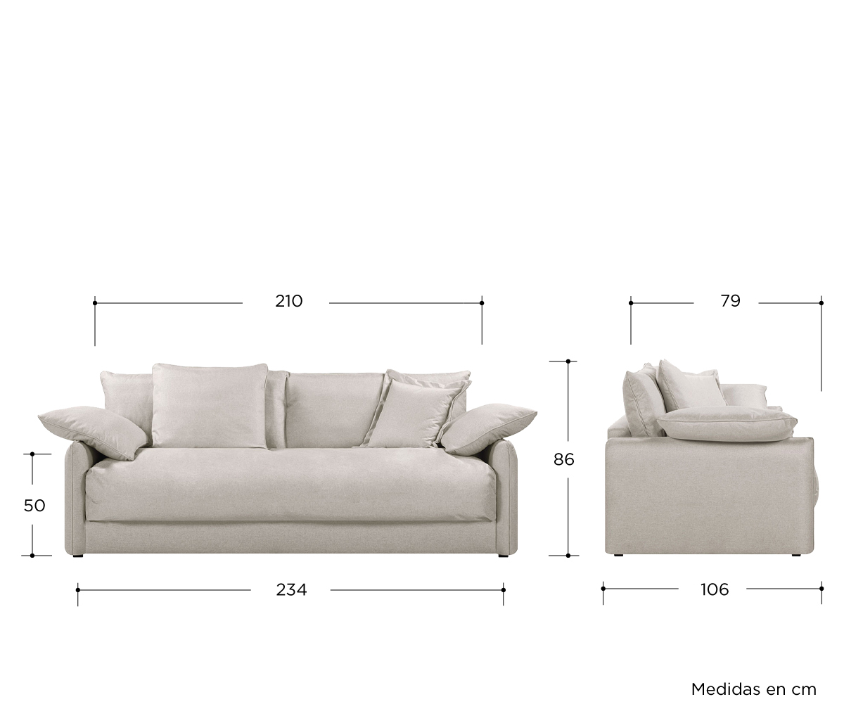 Sofá 3 cuerpos Liv - Gris claro