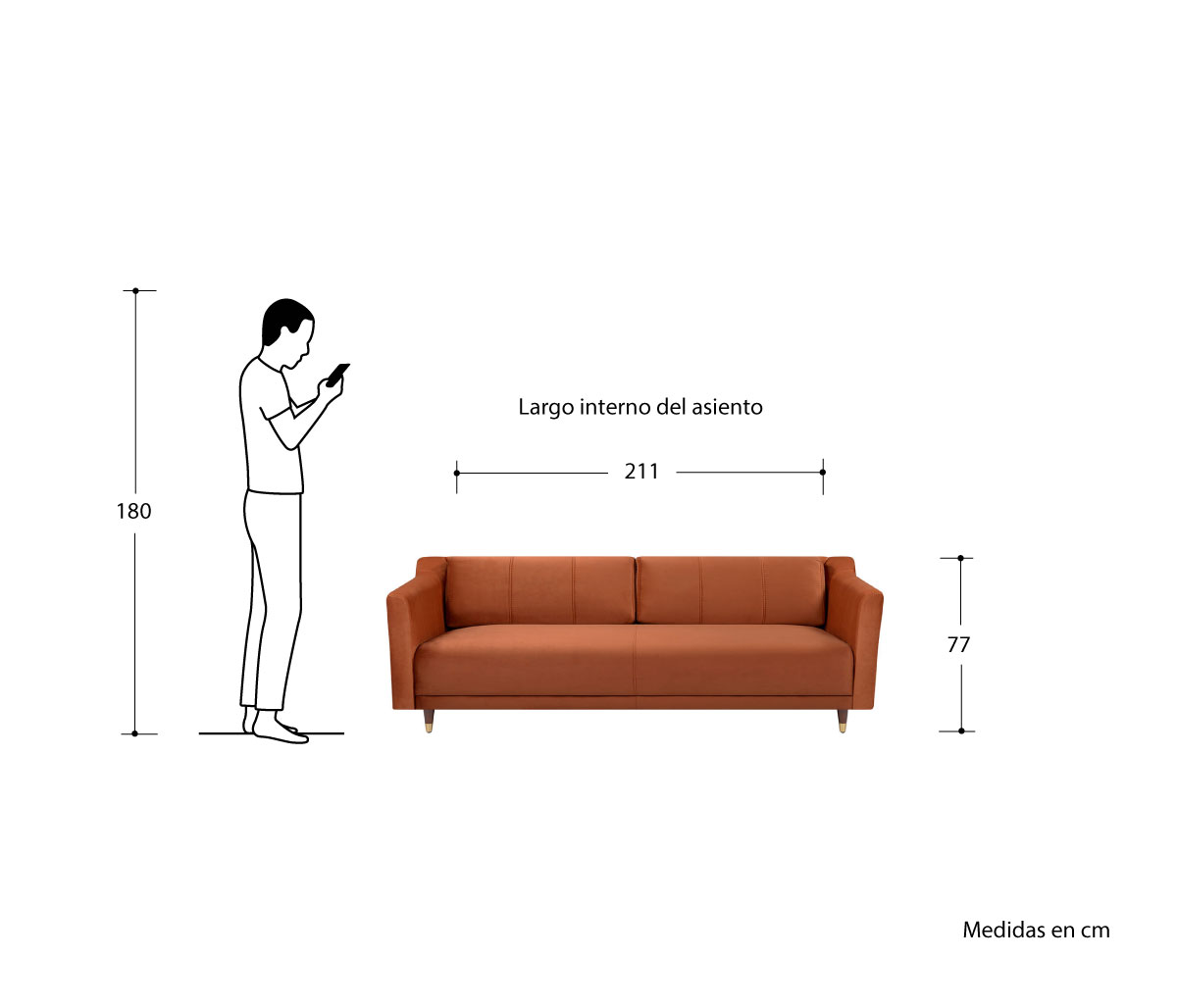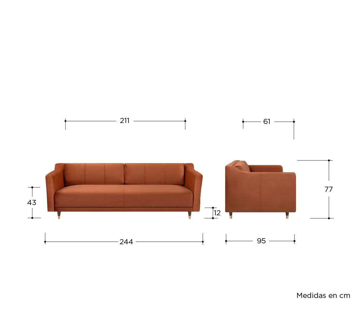 Sofá 3 cuerpos Solís - Terracota